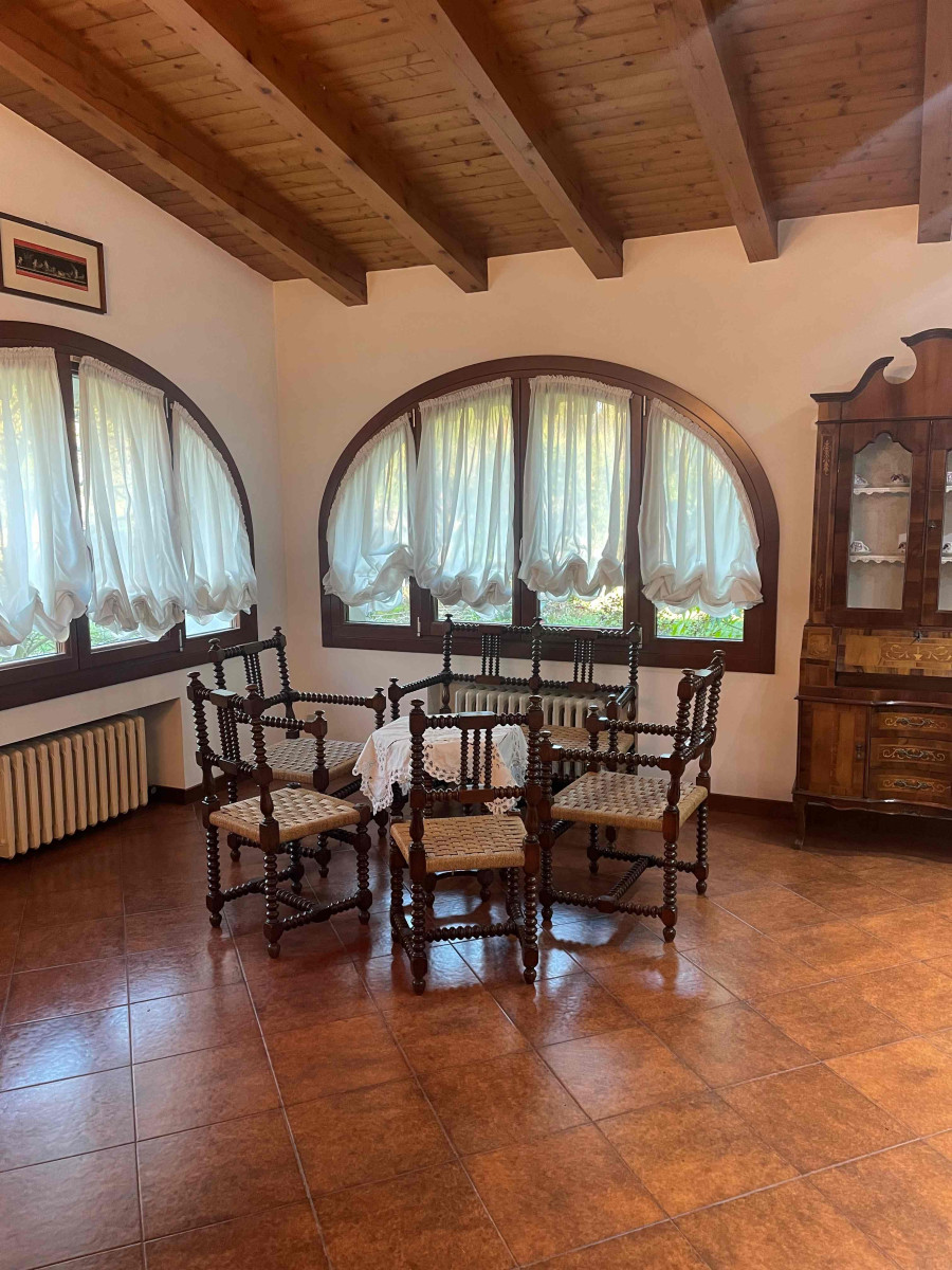 Zelarino immersa nel verde vendiamo bifamiliare di ca 250 mq. con scoperto di 1000 mq. composta da ingresso, soggiorno ampio con caminetto, cucina abitabile, camera matrimoniale con bagno con vasca, 2 camere con bagno con doccia Lavanderia e taverna con caminetto. Garage di 20 mq. Tutti gli infissi sono nuovi con vetrocamera in legno, rifatto pavimento della cucina. Porta blindata. classe F